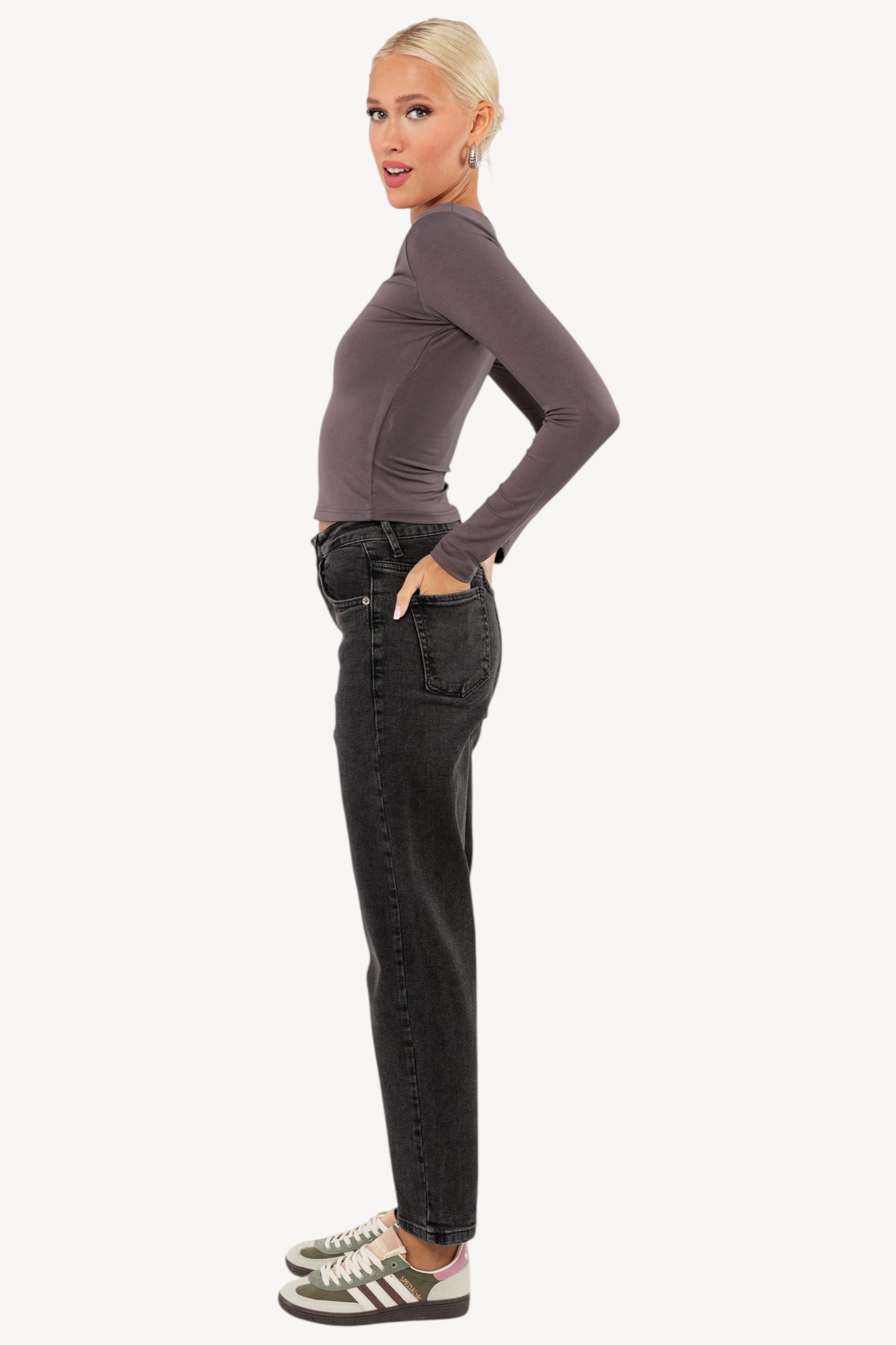 Get ready to top off your wardrobe with the June Top! This perfect basic long sleeve is sure to become your go-to for any outfit. Versatile and comfortable, the June Top is a must-have for any fashion-forward individual. Don't miss out, grab yours today!