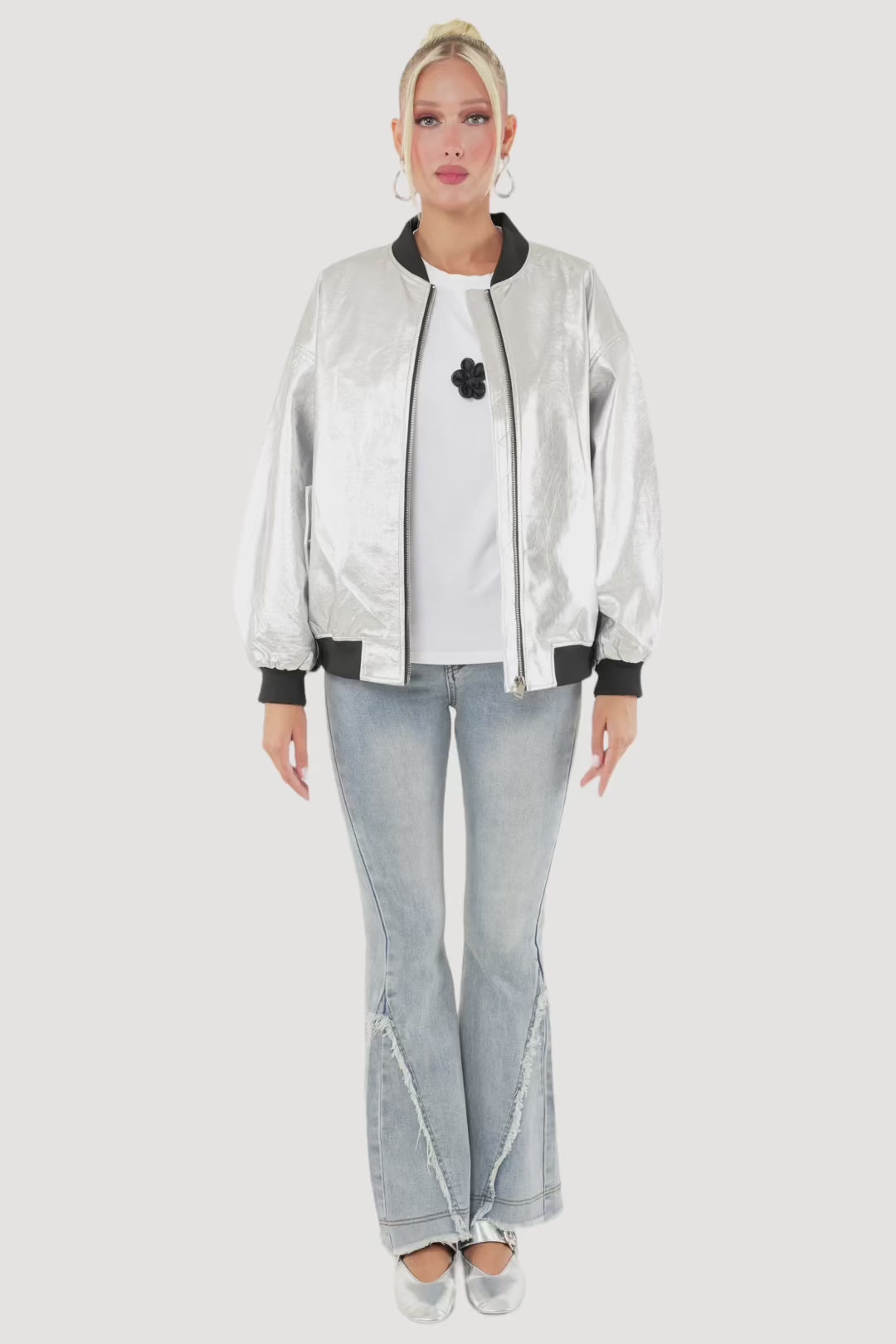 Stay stylish and warm with the Elliana Jacket. This silver jacket boasts a sleek and modern design, perfect for any outfit. Made from high-quality materials, it is both durable and fashionable. Elevate your wardrobe with this must-have piece.