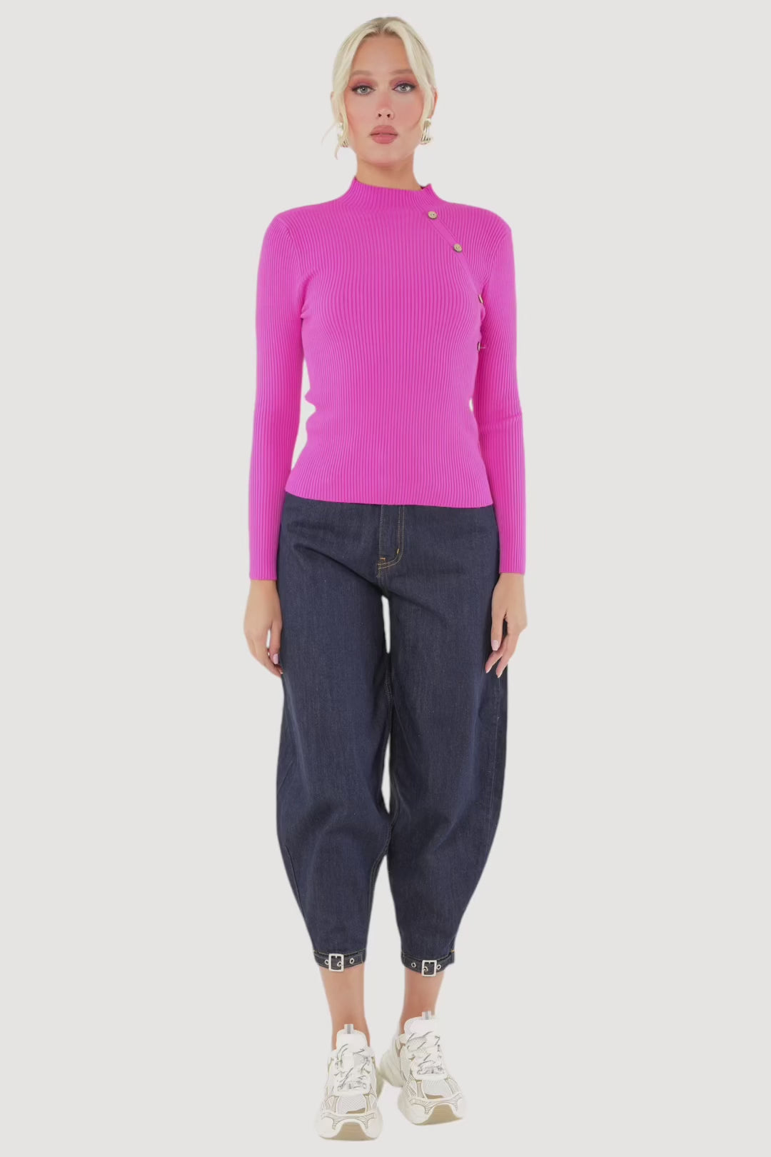 The Rebecca Sweater: a stylish option for surviving the winter. This dark pink sweater will keep you warm while also making a fashion statement. A must-have for the chilly season.