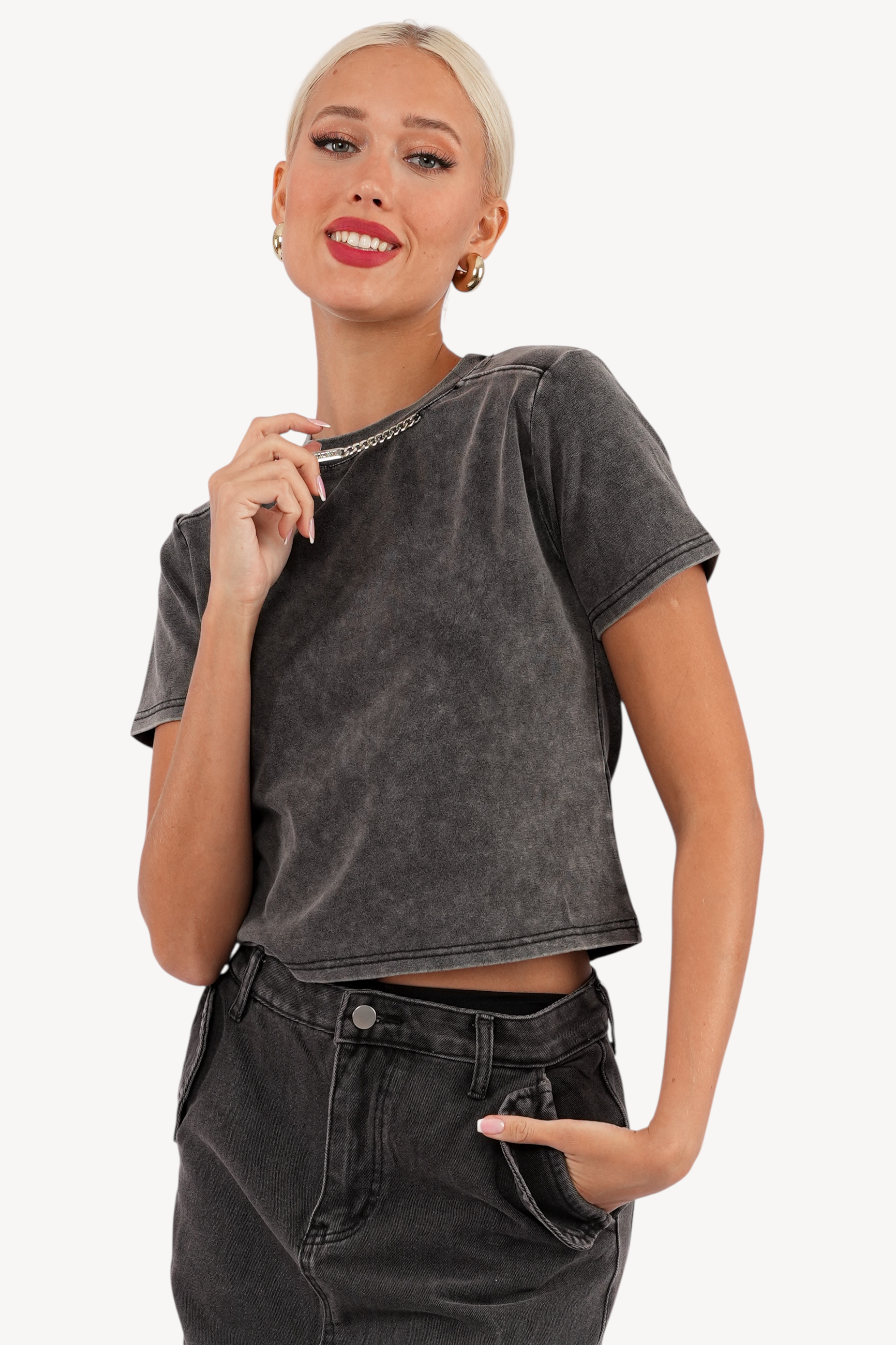 Add a splash of fun to your wardrobe with the Joanna Tee, a cropped top that’s all about cute vibes. Its playful fit pairs perfectly with high-waisted jeans or skirts, making it an effortless go-to for sunny days and casual hangouts. Comfortable and stylish, this tee lets you show off your carefree side with ease.